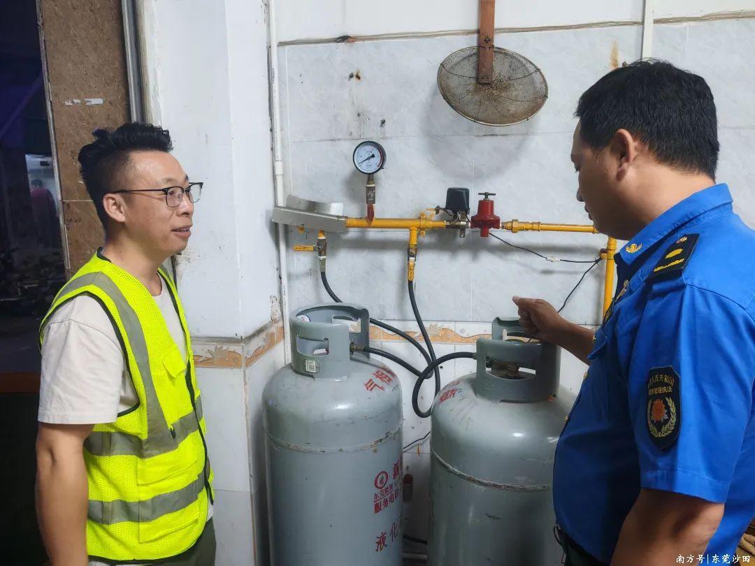 走进热闹的餐饮街区,城管队员化身“燃气安全卫士”,手持检测仪对商铺燃气管道、报警器进行“体检”。他们穿梭在各个店铺之间,不放过任何一个细节,从燃气管道的连接处是否漏气,到报警器的灵敏度是否达标,都进行了严格检查,确保群众享受美食时没有后顾之忧。